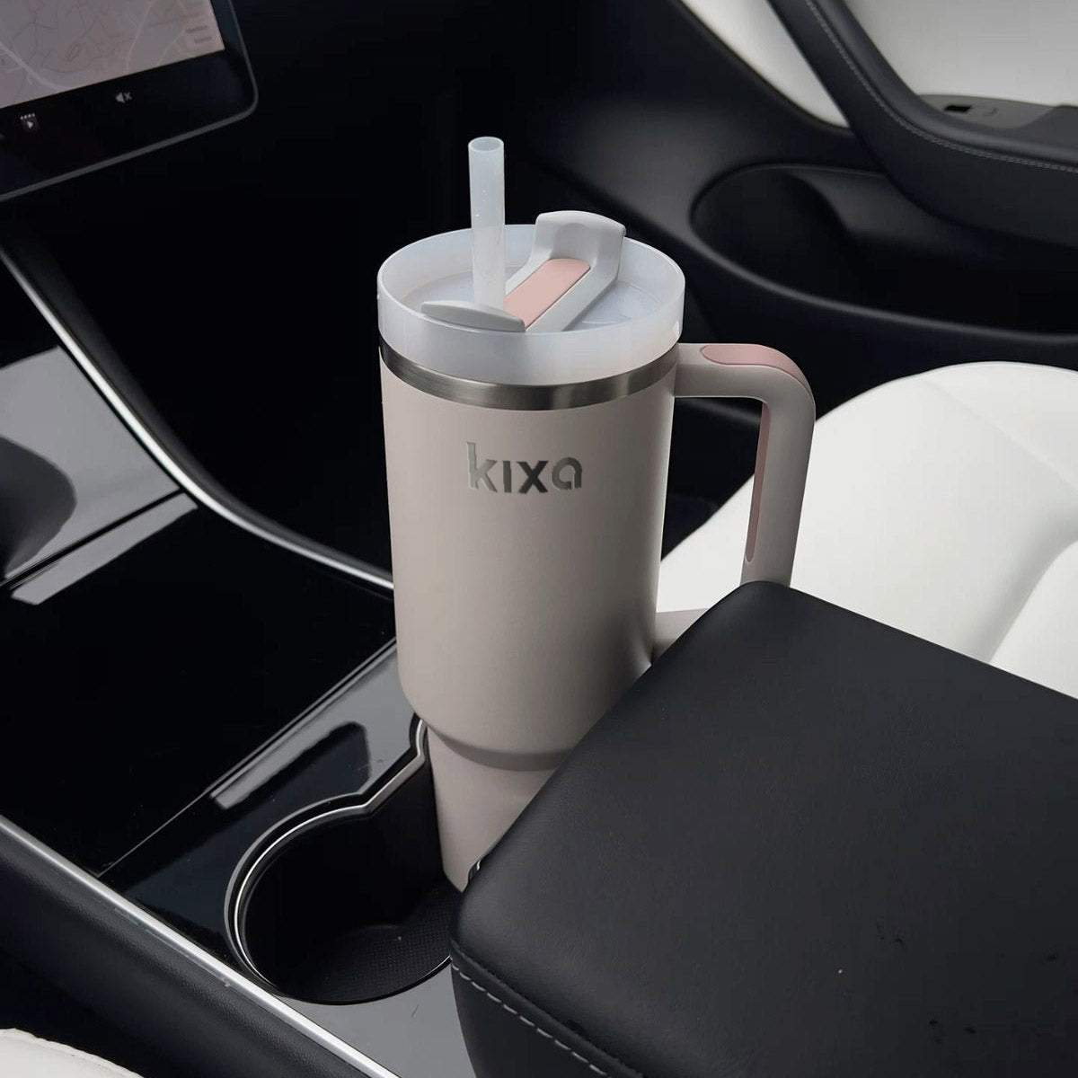I love it ! Fits so much water, fits into my car’s cup holder, and I love that I can hold it with the handle. Allows me to hold multiple things. It is also super cute !