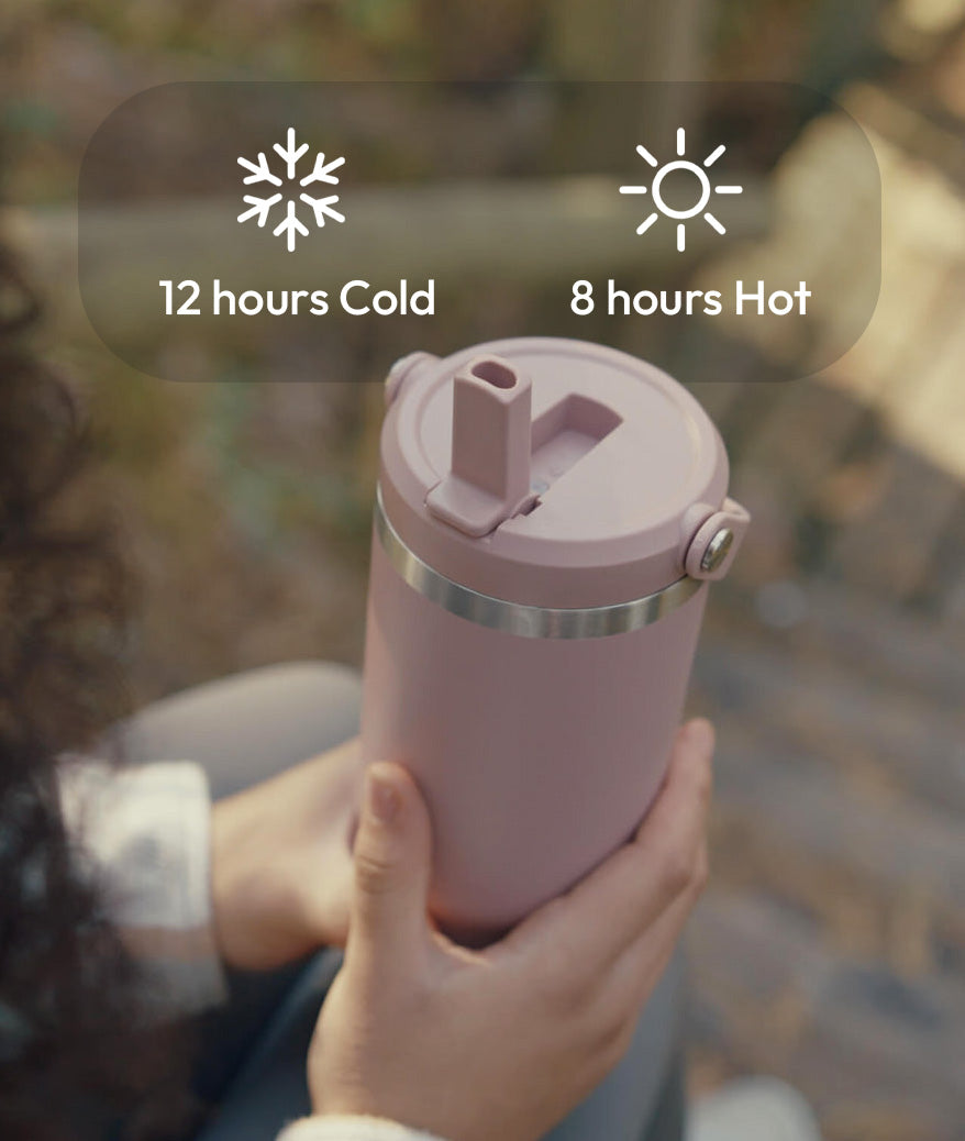 The Aura Cup maintains cold drinks for up to 12 hours and keeps hot beverages warm for up to 8 hours, thanks to its double-wall insulation.